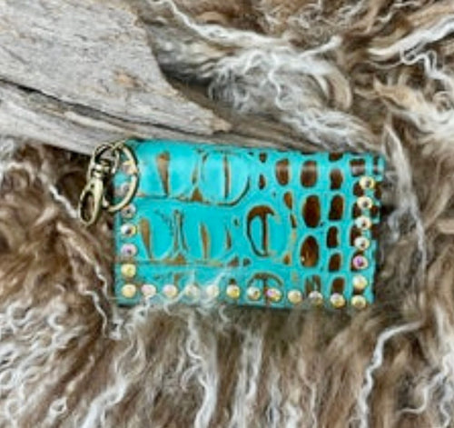 Metal chain with embossed leather rose and turquoise bracelet #1